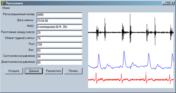 Рис. 16. Окно программы после нажатия на кнопку Данные