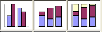 Первые два способа позволяют создавать любые типы диаграмм за четыре последовательных шага Мастера диаграмм. Два последних способа позволяют создавать стандартные диаграммы (гистограммы) за один шаг.