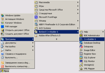 Запускается C++ Builder обычным образом, т. е. выбором из меню Borland C++Builder 6 команды C++Builder 6 (рис. 1).