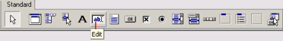 Для того чтобы в форму разрабатываемого приложения добавить поле редактирования, надо в палитре компонентов, на вкладке Standard, щелкнуть на значке компонента Edit (рис. 10), установить курсор в ту точку формы, в которой должен быть левый верхний угол компонента, и еще раз щелкнуть кнопкой мыши. В результате на форме появляется компонент Edit — поле редактирования (рис.11).