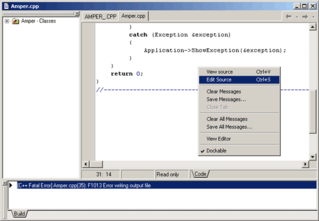 Чтобы перейти к фрагменту кода, который, по мнению компилятора, содержит ошибку, надо выбрать сообщение об ошибке (щелкнуть в строке сообщения левой кнопкой мыши) и из контекстного меню (рис. 36) выбрать команду Edit Source.