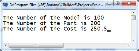 Пример_2: Создадим класс, членами которого будут изделия, состоящие из деталей и их стоимостей, а также методы, первый из которых присваивает значения изделию и детали, а также их стоимости через свои параметры, а второй выводит на экран значения, присвоенные первым методом.