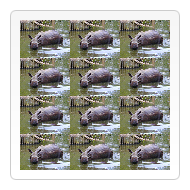 В этом примере мы используем другой подход к загрузке изображений, чем в примере выше.Мы просто размечаем изображения непосредственно в HTML документе и используем правила CSS, чтобы скрыть их. Обоим изображениям мы присваиваем атрибут id чтобы их было легче выбрать. Скрипт сам по себе очень прост. Сначала мы вырезаем голову носорого и помещаем ее на холст а, затем помещаем изображение рамки на холст.
