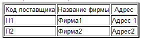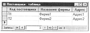 Таблица "Поставщики" должна содержать три текстовых поля: "Код поставщика", "Название фирмы" и "Адрес". Ключевым полем является поле "Код поставщика".