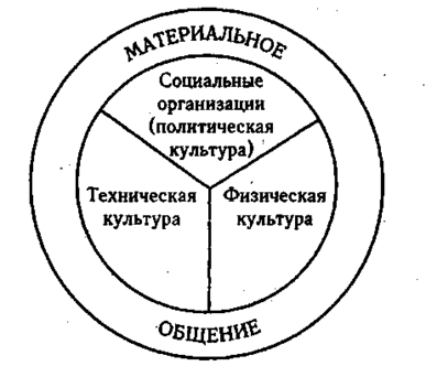 Еще один компонент материальной культуры — материальное общение. Речь идет о тех формах коллективной практики — в труде, военном деле, спортивных играх, — участники которых выступают как равно свободные и равно активные субъекты общей деятельности.