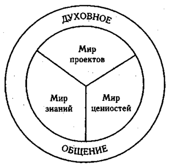 Таким образом, содержание духовной культуры определяется строением духовной деятельности человека. Как показал ее системный анализ, она охватывает способы освоения субъектом объективной реальности, которые являются необходимыми и достаточными для обеспечения подлинного и полноценного человеческого бытия, — это три вида субъектно-объектного отношения: 1) познание мира; 2) его ценностное осмысление; 3) идеальное преобразование (проектирование желаемого). Необходимое для всего этого межсубъектное взаимодействие людей — их духовное общение.