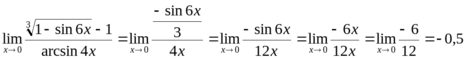 Воспользуемся эквивалентными бесконечно малыми величинами: при