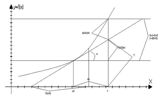 df(x0) – это приращение ординаты при движение по касательной проведённой к графику функции в точки (х0;f(x0).