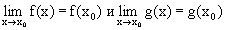 Пусть f(x) и g(x) непрерывны в точке x0. Это значит, что
