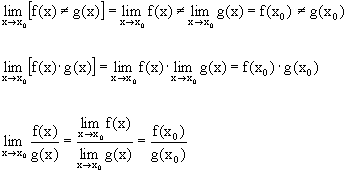 Арифметические опрерации: f(x)+-/*g(x) если функции непрерывны в х0