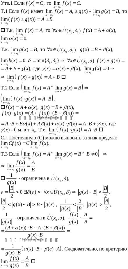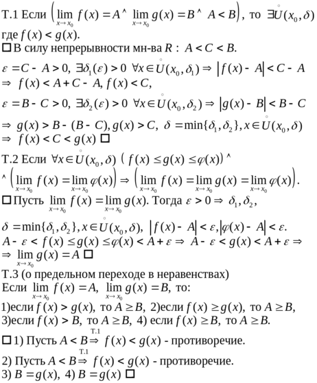 Док-во.Пусть a>b и E=(a-b)/4 есть хоть1 D1 и любой х: |x-x0|-D1=>|f(x)-a|<E=(a-b)/4=> -(a-b)/4< f(x)-a<(a-b)/4 (3a+b)/4<f(x)<(5a-b)/4