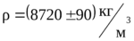 получено, что ρ= 8723,23 кг/м3 , а ∆ ρ=93,27 кг/м3 , то