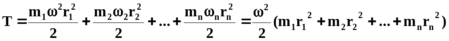 Кинетическая энергия вращающегося тела Т может быть рассчитана как сумма кинетических энергий отдельных его элементов :