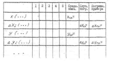 2. Определяют абсолютные погрешности отдельных измерений и случайные погрешности проведенных прямых измерений. Результаты расчетов заносят в таблицу.