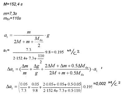 Задание. Сравнить полученный результат с расчётным значением ускорения, выведенным из законов динамики поступательного и вращательного движения.