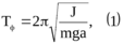 где J – момент инерции маятника относительно оси, проходящей через точку подвеса, m – масса маятника, a – расстояние между точкой подвеса и центром инерции маятника, g – ускорение свободного падения. Сравнивая период (1) с периодом малых колебаний математического маятника