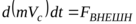 как членом второго порядка малости можно пренебречь. Согласно второму закону Ньютона скорость изменения импульса за время dt равна внешней силе, действующей на это тело за это время, т. е.: