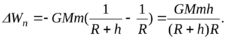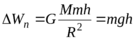 Изменение потенциальной энергии тела массы m, поднятого с поверхности Земли (r = R, где R – радиус Земли) на высоту h (r = R + h), согласно (16), равно: