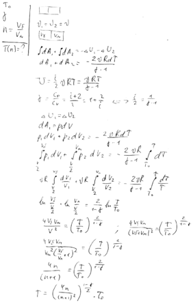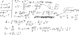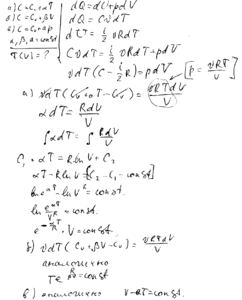 Найти уравнение процесса (в переменных T,V), при котором молярная теплоёмкость идеального газа изменяется по закону….