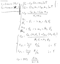Вычислить gamma для газовой смеси, состоящей из 2 молей кислорода и 3 молей углекислого газа.