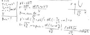 Определить наименьшее возможное давление идеального газа в процессе, происходящем по закону Т=Т(0)+aV^2…..