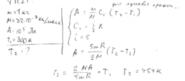 При адиабатном сжатии кислорода массой 1 кг совершена работа. Определить конечную температуру газа, если до сжатия….