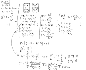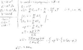 При адиабатном расширении кислорода с начальной температурой внутренняя энергия уменьшилась на, а его объём увеличился в … Определить…