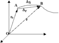 | Длина участка траектории АВ, пройденного материальной точкой за промежуток t, называется длиной пути s и является скалярной функцией времени. На участке АВ вектор средней |