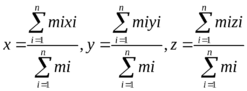 Центр масс системы материальных точек – точка, координаты которой определяются следующими соотношениями:
