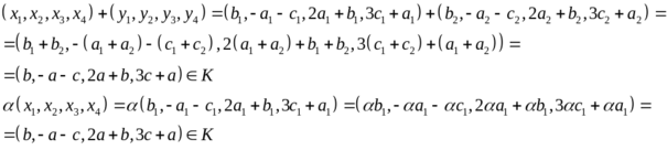Найдем базис и размерность подпространства К. Рассмотрим произвольный элемент из этого подпространства