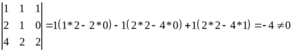 образуют базис, если определитель, составленный из координат этих векторов, отличен от нуля, в противном случае вектора не являются базисными и вектор