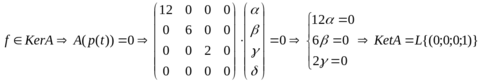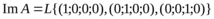 Отсюда получаем образ данного оператора как дополнения ядра до полного пространства L, для этого выбираем базисные векторы с нулями в тех координатах, которые отличны от нуля в уже выбранном векторе (0;0;1):