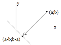 переводит точку с координатами (a;b) в точку с координатами (a-b;b-a):