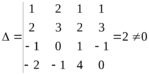 Количество векторов 4 равно размерности пространства R4. Проверяем линейную независимость данной системы векторов, для чего вычисляем определитель, составленный из их координат: