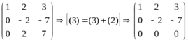 Ранг системы векторов равен 2, поэтому размерность линейной оболочки также равна 2. Из последней матрицы также можно определить, что в качестве базиса линейной оболочки можно выбрать векторы