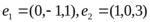 , которые и являются в ней базисом. Размерность такой линейной оболочки равна 2, для дополнения ее базиса до базиса всего пространства достаточно добавить вектор