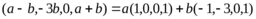 2.8. Доказать, что векторы вида (a-b,-3b,0,a+b) образуют линейнгое подпространство в пространстве R4. Найти его базис, размерность. Дополнить базис подпространства до базиса всего пространства.