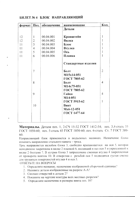 | 1.Выполнить рабочий чертеж детали позиции с нанесением размерных линий, знаков, диаметров, радиусов и резьб. 2.Ответить на вопросы по чертежу общего вида. | ||