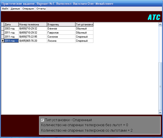 2) Используя исходную БД, спроектируйте экранную форму (приложение), включив в нее все поля и оформив некоторые из них следующим образом: Год установки телефона необходимо вывести в формате, например:1990 год.
