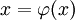 Эта функция в окрестности корня осуществляет сжимающее отображение, и алгоритм нахождения численного решения уравнения