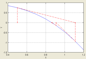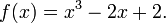 Иллюстрация расхождения метода Ньютона, применённого к функции f(x) = x3 − 2x + 2 с начальным приближением в точке x0 = 0.