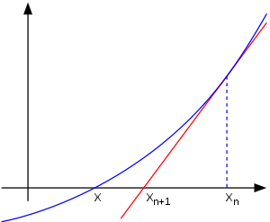 Метод Ньютона (также известный как метод касательных) — это итерационный численный метод нахождения корня (нуля) заданной функции. Метод был впервые предложен английским физиком, математиком и астрономом Исааком Ньютоном (1643—1727), под именем которого и обрёл свою известность. Поиск решения осуществляется путём построения последовательных приближений и основан на принципах простой итерации. Метод обладает квадратичной сходимостью. Улучшением метода является метод хорд и касательных. Также метод Ньютона может быть использован для решения задач оптимизации, в которых требуется определить нуль первой производной либо градиента в случае многомерного пространства.
