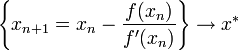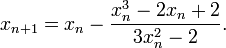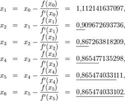 Итерационный процесс начинается с некого начального приближения x0 (чем ближе к нулю, тем лучше, но если предположения о нахождении решения отсутствуют, методом проб и ошибок можно сузить область возможных значений, применив теорему о промежуточных значениях).