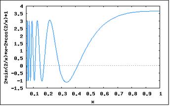 Рассмотрим задачу о нахождении положительных x, для которых cosx = x3. Эта задача может быть представлена как задача нахождения нуля функции f(x) = cosx − x3. Имеем выражение для производной f'(x) = − sinx − 3x2. Так как