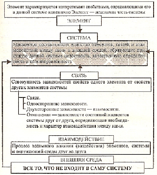 Будем использовать понятие системы, которое учитывает такие важные составляющие любого материального объекта, как элемент, связи, взаимодействия, целеполагание.