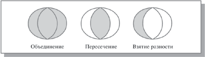 Рис. Иллюстрация результатов теоретико-множественных операций