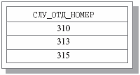 Результат операции PROJECT СЛУЖАЩИЕ_В_ПРОЕКТЕ_1 {СЛУ_ОТД_НОМ} (в каких отделах работают служащие, данные о которых содержатся в отношении СЛУЖАЩИЕ_В_ПРОЕКТЕ_1?) показан на рис.