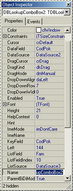 Бросим на форму DBLookUpComboBox, установим следующие свойства