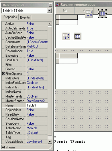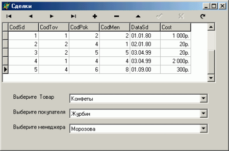 Таблица Сделки – особая. Так как человек не может запомнить и вводить коды, то следует организовать такой же ввод данных, как в Paradox и Access.