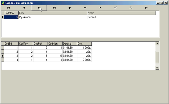 Создадим программу просмотра таблиц сделок с выдачей списка менеджеров их совершивших.